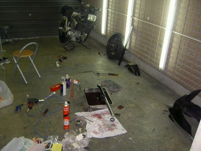 110428_1133~01.jpg今、やっている仕事はカワサキのZX12Rのオールペン、、、キャンディーブルーパープルとでもいいましょうか、、、