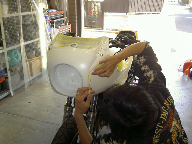 ウイングマークにホンダの文字、、、マスキングを貼ります。