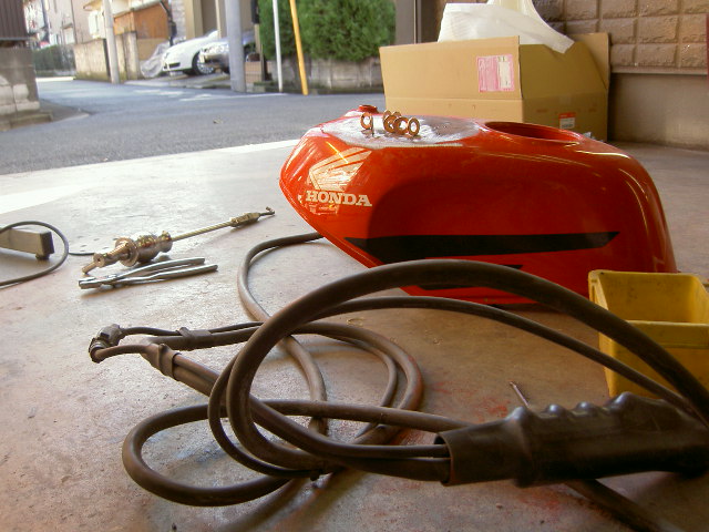 このくそ寒い中、鼻をタラシながらNSR50のタンクの板金をして、、、