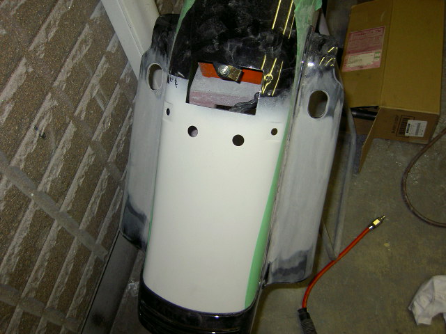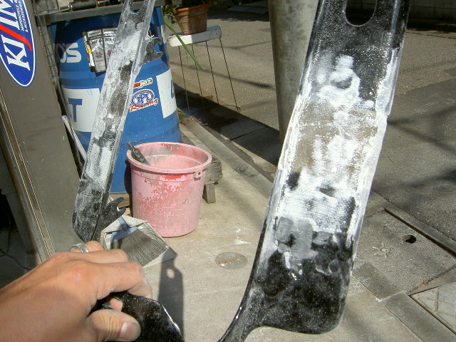 つづいてハーレーのRフェンダーに付くスカート?とでもいいましょうか部品の延長作業!!これはFRPで足りない部分を造り、、