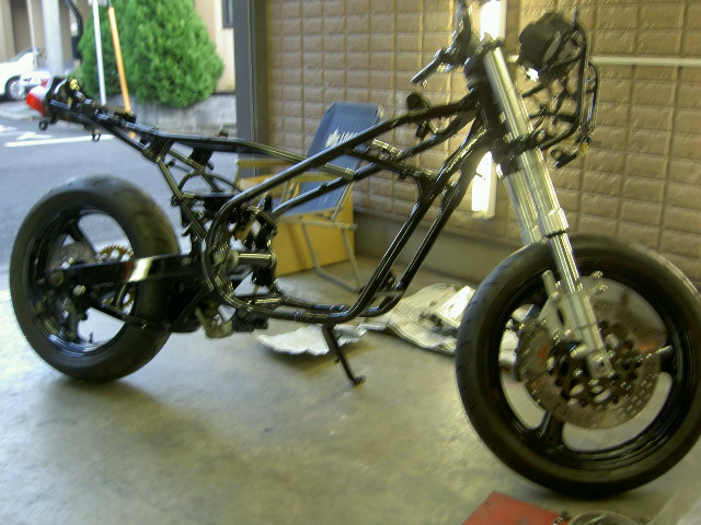 そ~なんです!!待つこと約2週間!!外注していたステムシャフトが本日届き!!やっとこゼファーのZXR400のF廻りが組み込めました!!やはり迫力がありますな~倒立は!!