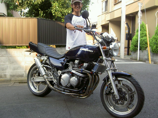 PICT2184.JPG練馬区のT様のゼファー400が完成しました、今回はマフラーのカチ上げ加工とオイルクーラー取り付け、キャブレターのファンネル使用セッティングといったメニューでした、、