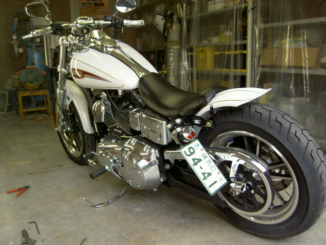 PICT2222.JPGブログを見てくれている方お久しぶりです!!約1ヶ月ぶりに書かして頂きます。盆明けからいろいろ忙しくブログを書く暇もない?感じでした!!!久しぶりのブログはハーレーの08‘FXDLのカスタムを乗せちゃいます。練馬区S様のご依頼で今年の8月に新車で購入の単車をカスタムいたしました。今回のプランはシート、フェンダー、マフラー、ハンドル、ナンバーサイドマウント等です、なんだかんだ作業は時間がかかりますね!!今年のホットロットショーに出品する車両もまだぜんぜんできてない!!どないしましょ!!