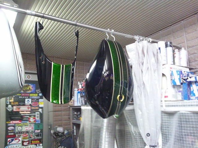 画像はハヤブサのテールカウル、レース塗装にキャンディータンジェリン