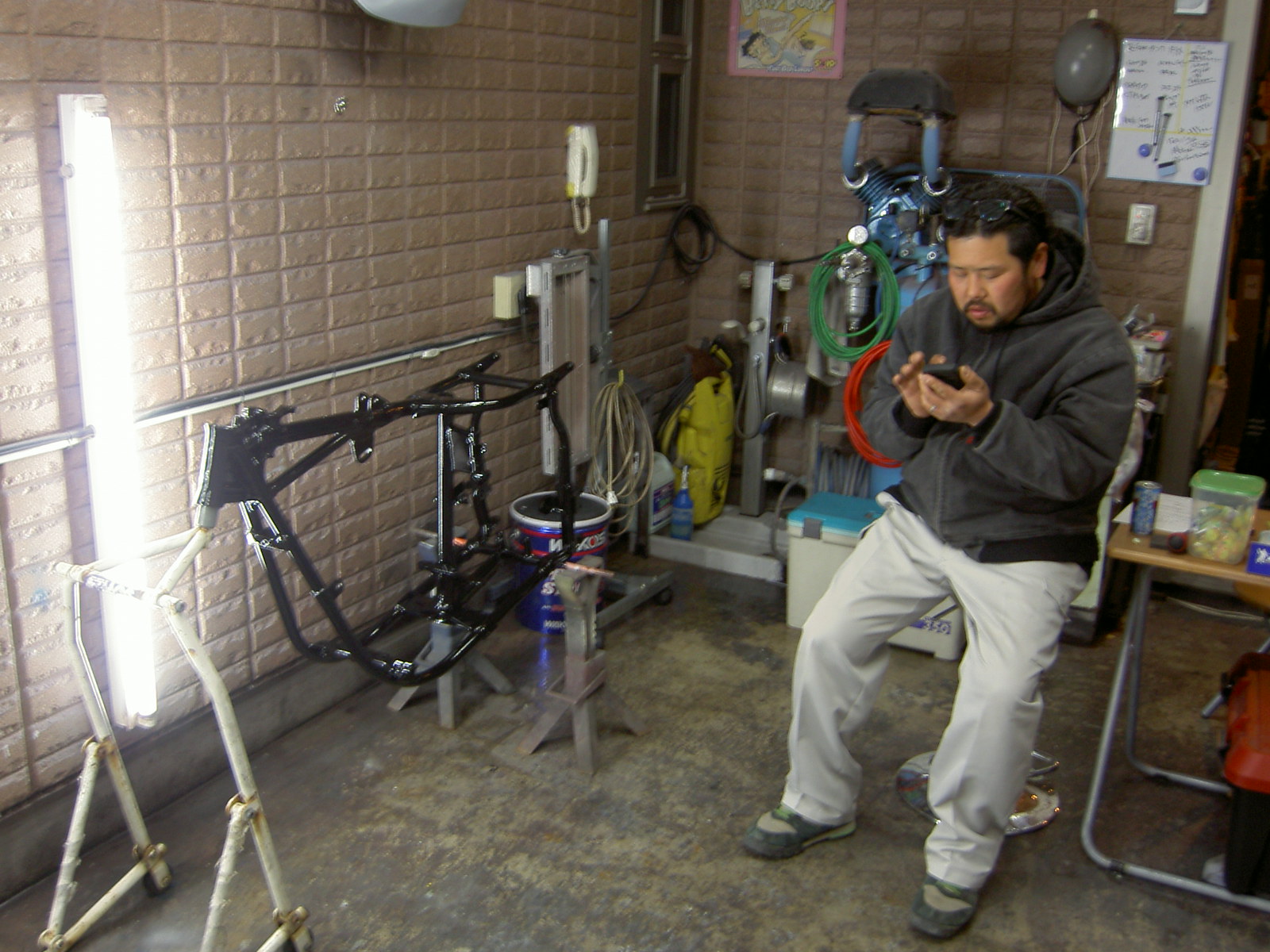 さてさてこちらはハーレーの4速フレームです、T-SPORT久保くんからの依頼でブラックにお色直しです、